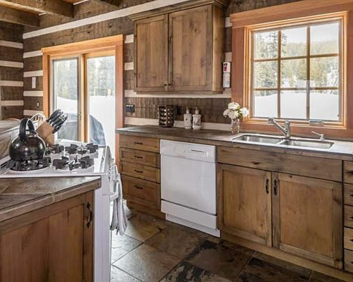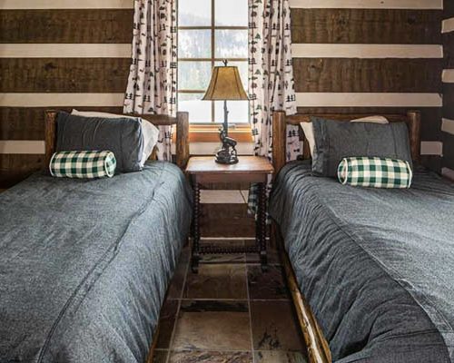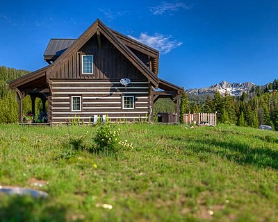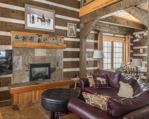 ボーダー柄がアクセントになったダブテイルログハウス✨