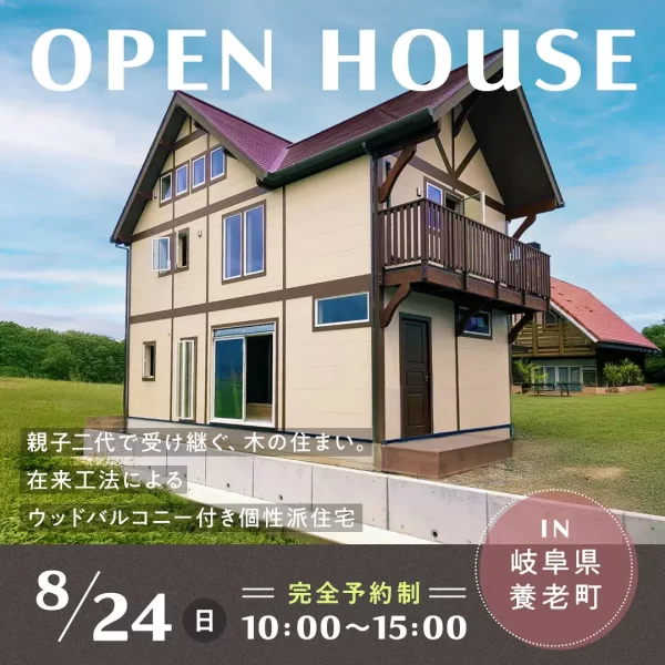 8月24日に岐阜県の養老町でオープンハウスを開催していますのでこの機会にご予約ください。