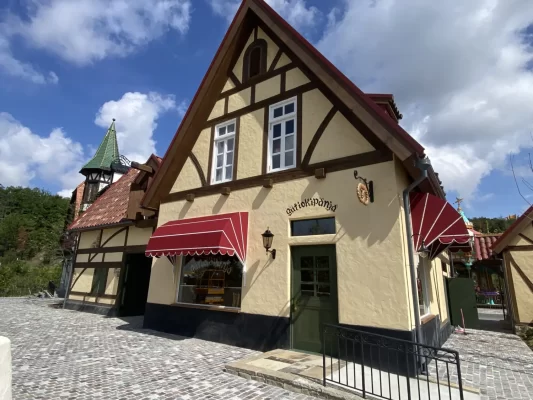ジブリパークにあるハーフティンバーフレーム様式のパン屋さんです。