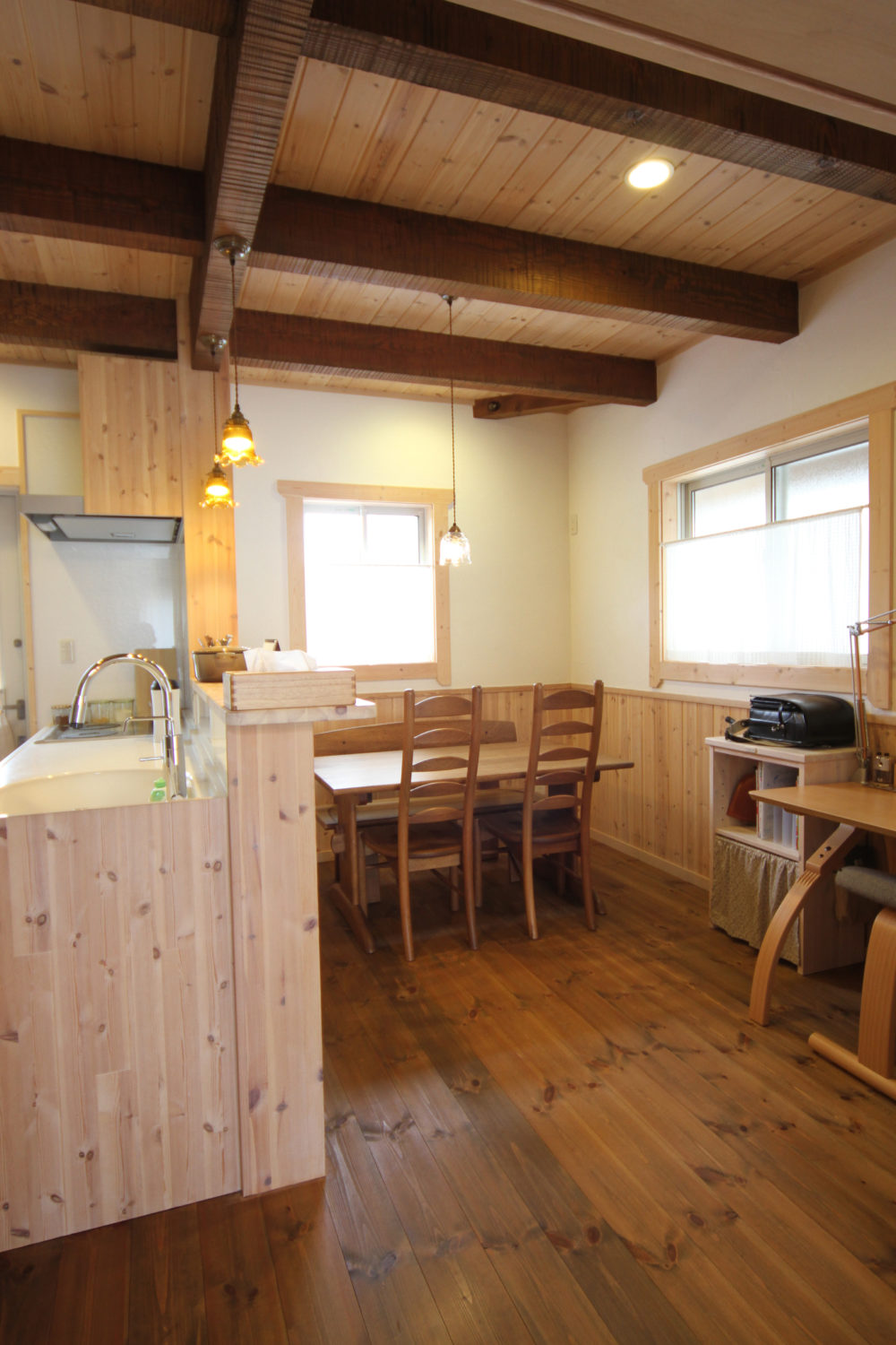 1本1本大工さんが手斧(ちょうな)掛けでアンティーク風に仕上げているのでとても手間がかかるお仕事です。