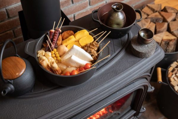 350℃に達するストーブトップが特徴で、炉内だけではなく天板でも薪ストーブ料理が楽しめます。