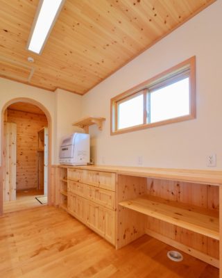 置き型の食洗機を採用しているのも、ライフスタイルに合わせたこだわり。 さらに、キッチン奥のパントリーには勝手口を設置。重い買い物袋をそのまま運び込んだり、ゴミ出しをスムーズにしたりと、裏動線も完璧です。