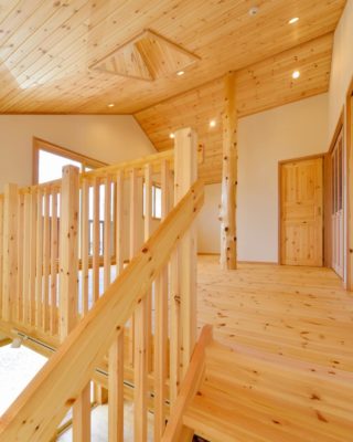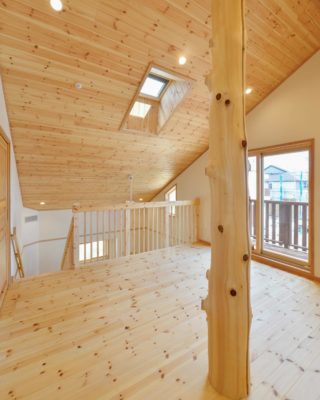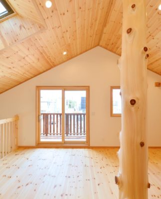2階のフリースペースで目を引くのは、空間のアクセントになっている「小節付きの丸太柱」です。