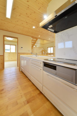 あえて造作で対面仕様にカスタマイズし、ゴミ箱の置き場もしっかり確保しました。