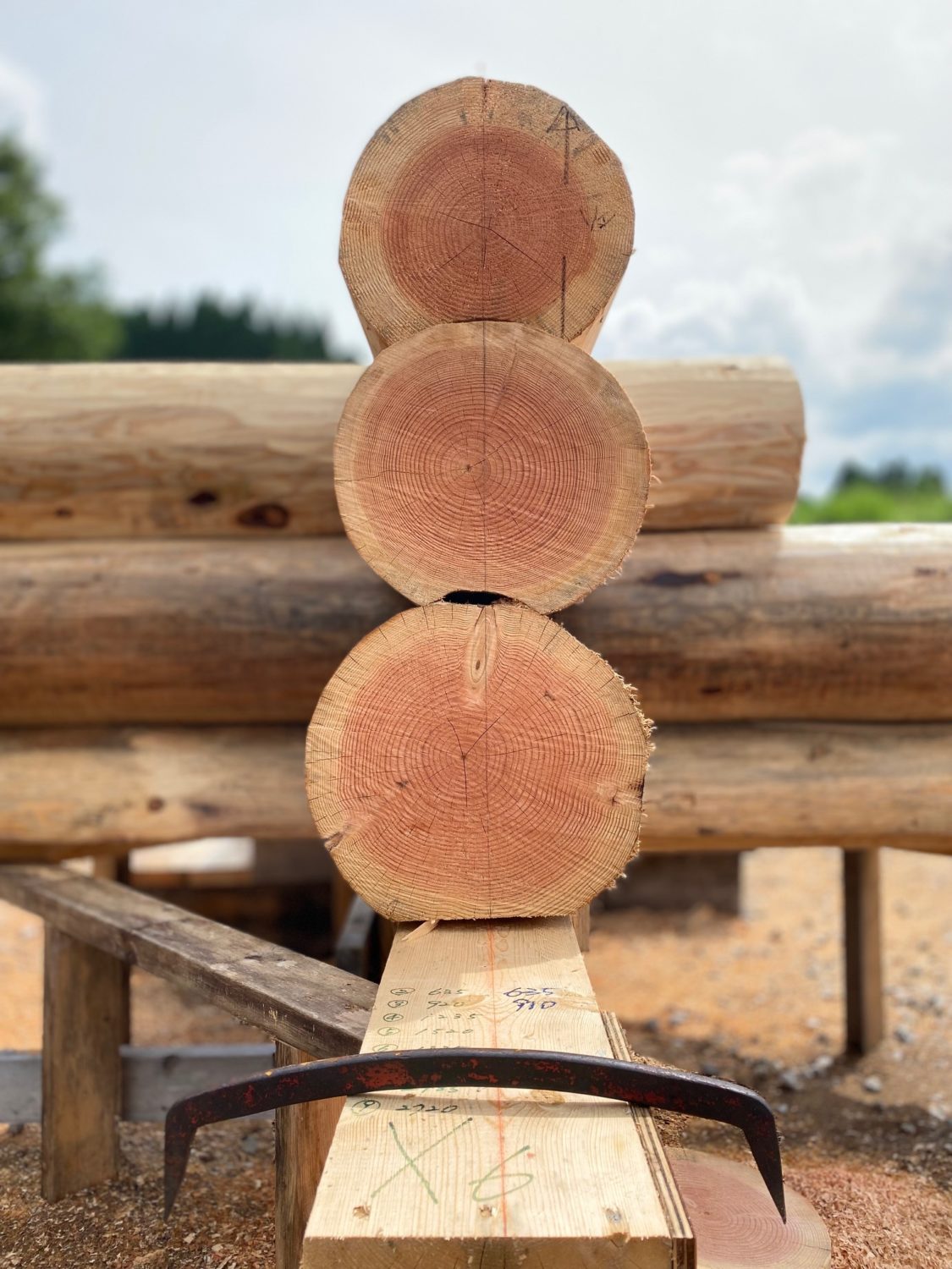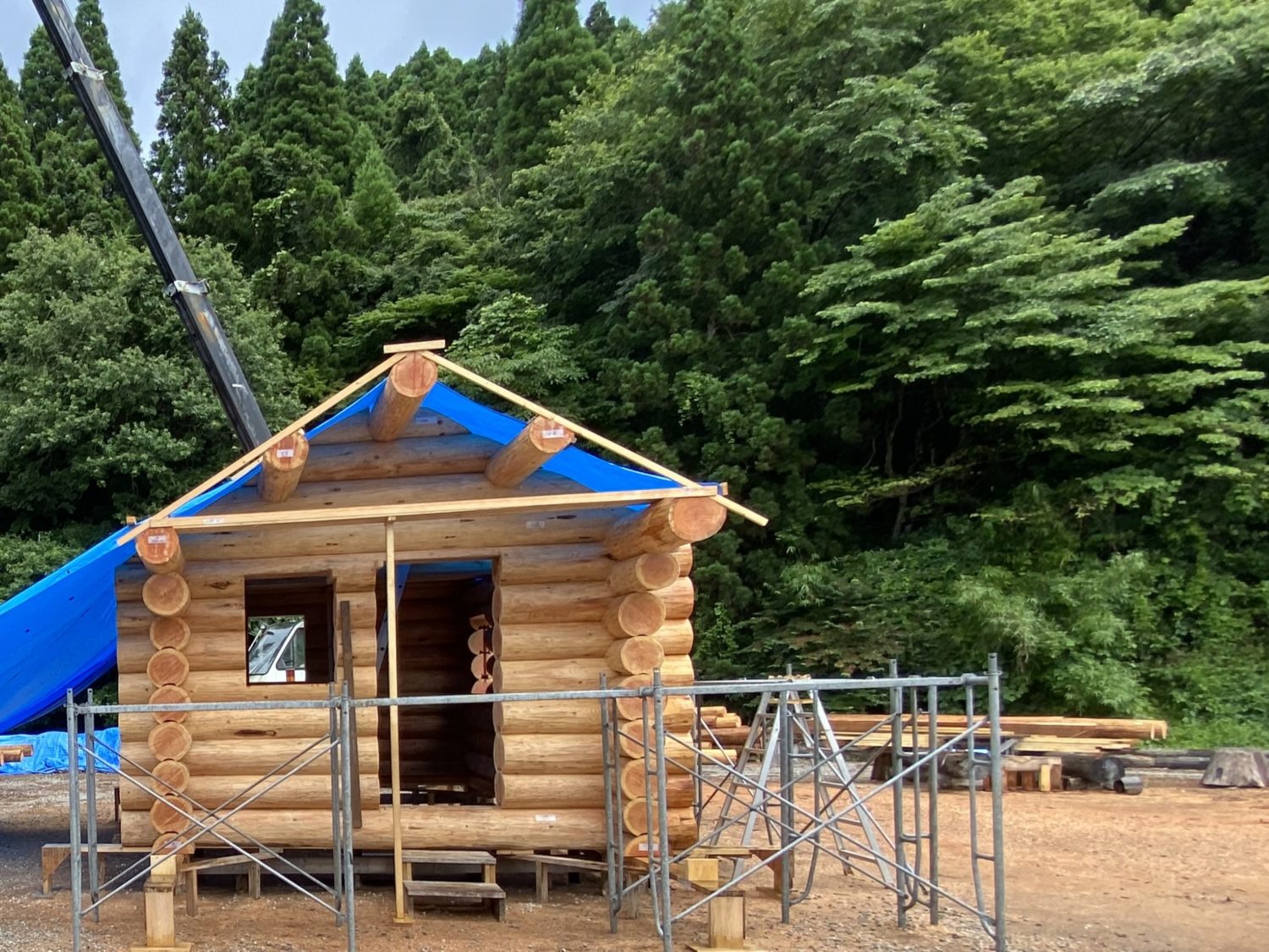 夢木香では丸太組工法の躯体加工と木工事を担当させていただきました。