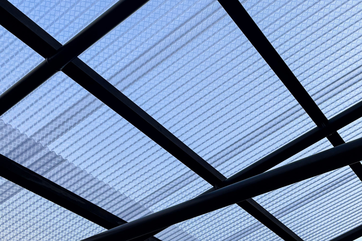 パーゴラと組み合わせて使うポリカーボネート波板は、耐用年数が10〜15年ほどといわれています。紫外線に強く、光を通すので室内が暗くならないのが魅力です。ただし年数が経つと徐々に色が褪せたり、表面が白っぽく曇ってきたりします。