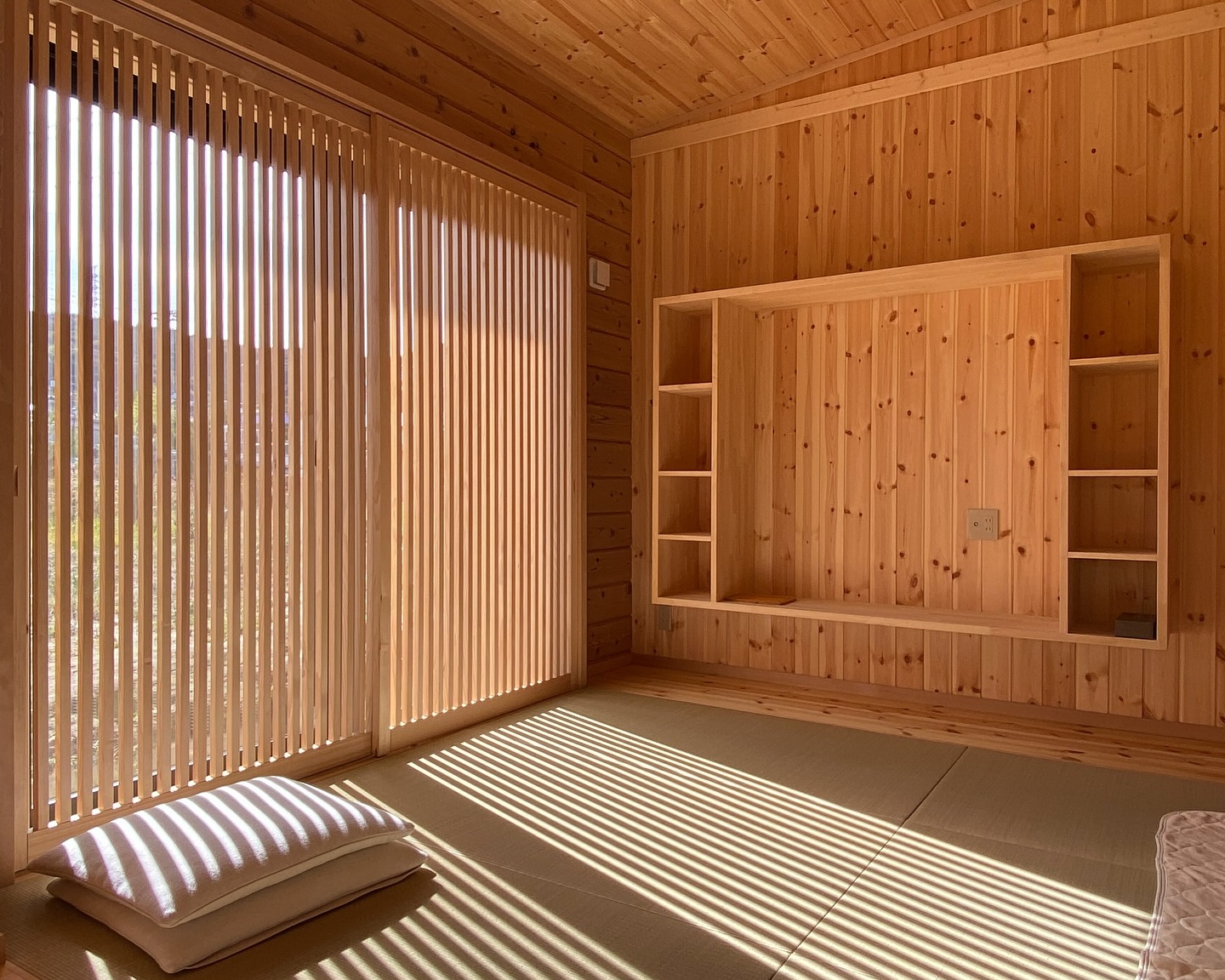 『 三和土のある和の平屋ログハウス 』 令和6年度ログハウス建築コンテスト優秀賞 公益財団法人 日本住宅・木材技術センター理事長賞