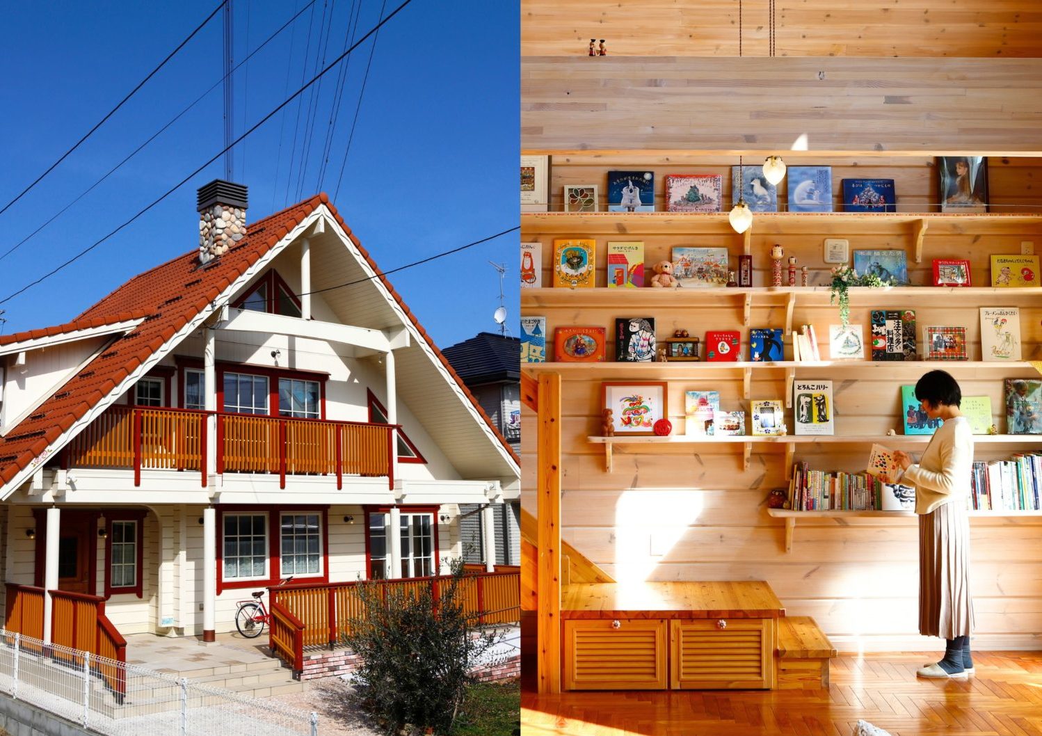 内観には、読書好きなご夫婦が大切にしてきた絵本たちが暮らしに溶け込み、