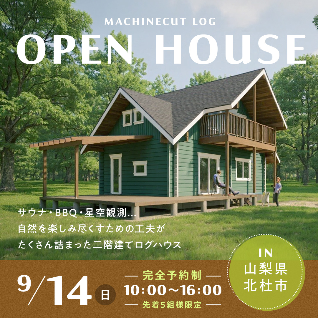 休日をゆったりと過ごすための拠点として建てられた、二階建てのログハウスです。