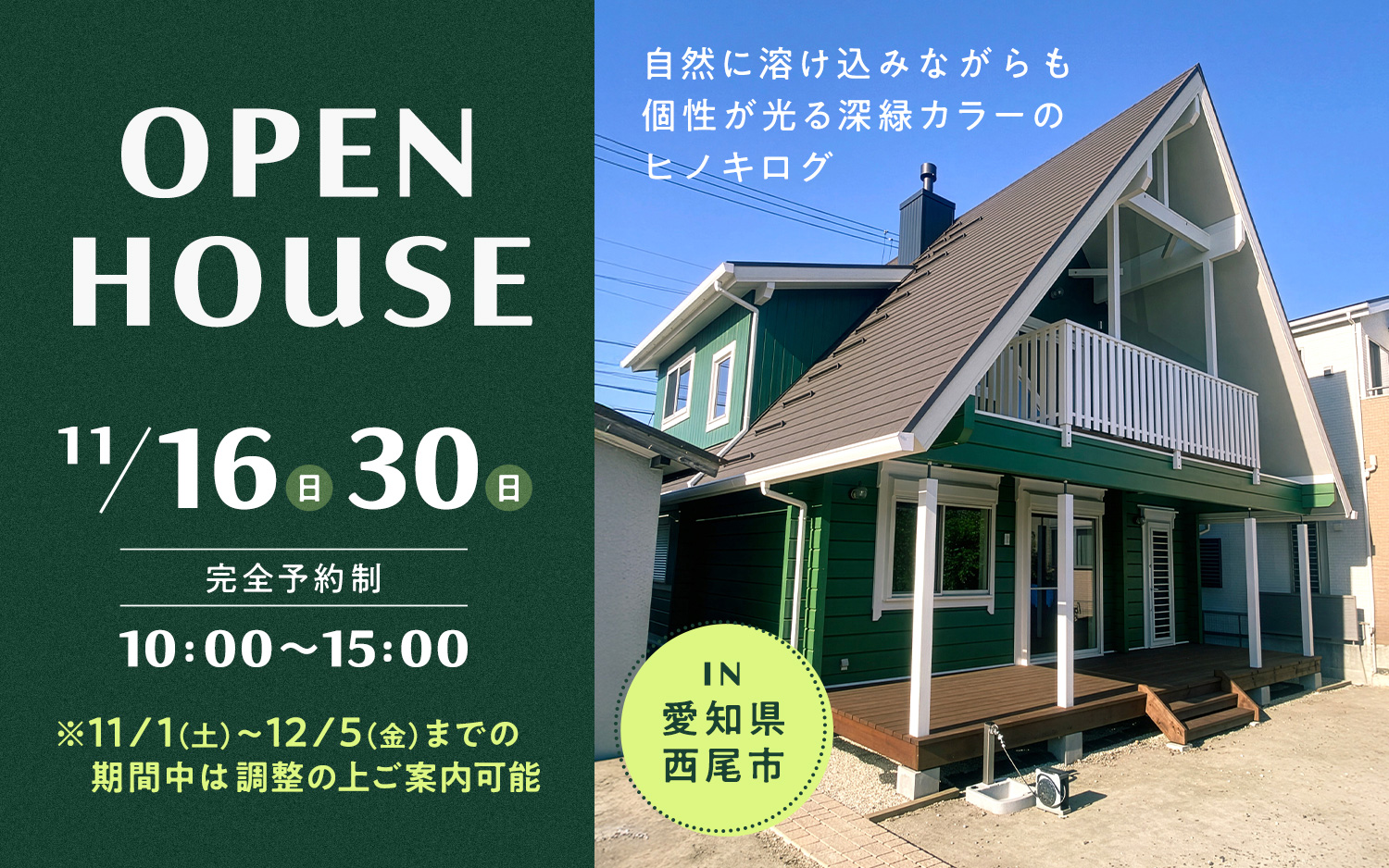 11/1(土)~12/5(金)期間限定モニターハウス見学会&完成見学会 ヒノキログの家 in愛知県西尾市