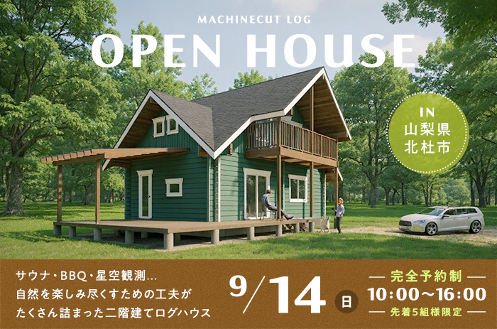 9月14日(日)山梨県北杜市 マシンカットログハウス完成見学会 ※限定5組